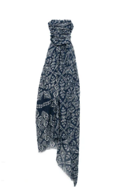 Élégance et fraîcheur avec ce chèche pour homme en voile de coton, sublimé d'une illustration végétale dans des coloris de bleu marine.