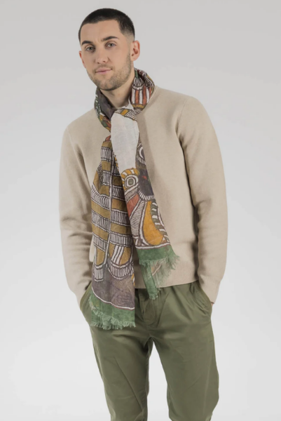 Adoptez l'élégance naturelle du lin avec ce chèche raffiné et plongez dans l'univers mystique de l'Inde avec le dessin Shiva une illustration inspirée des divinités hindoues.